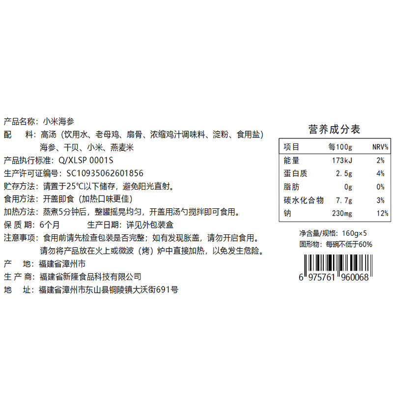 160g*5Naam van het product: Ingeblikte zeekomkommer met gierst