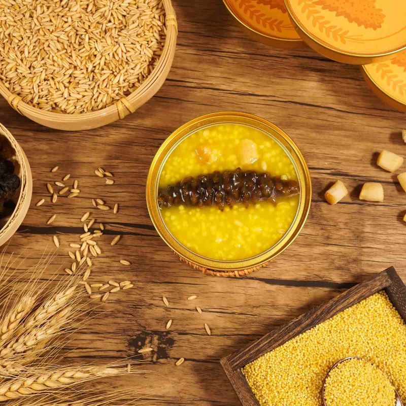 Ingeblikte zeekomkommer met gierst combineert perfect verse zeekomkommer en gierst en heeft een rijke smaak met een vleugje oceaansmaak, waardoor u een luxueuze ervaring op het puntje van uw tong krijgt.